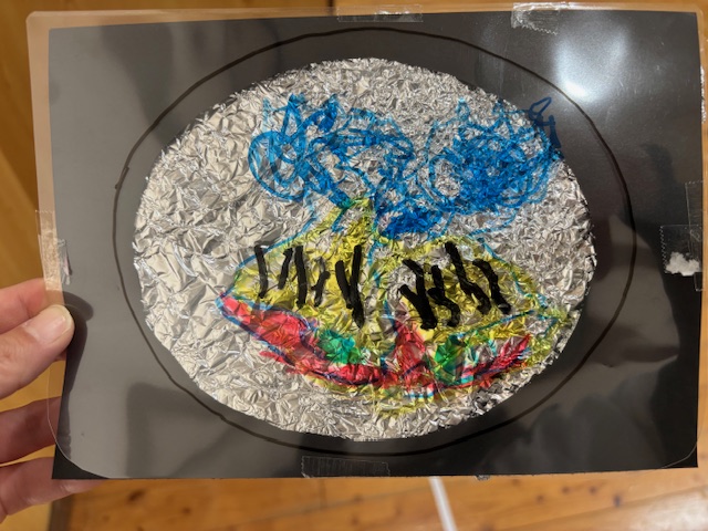 透明シートと、黒の画用紙、アルミホイルを貼ったら・・・