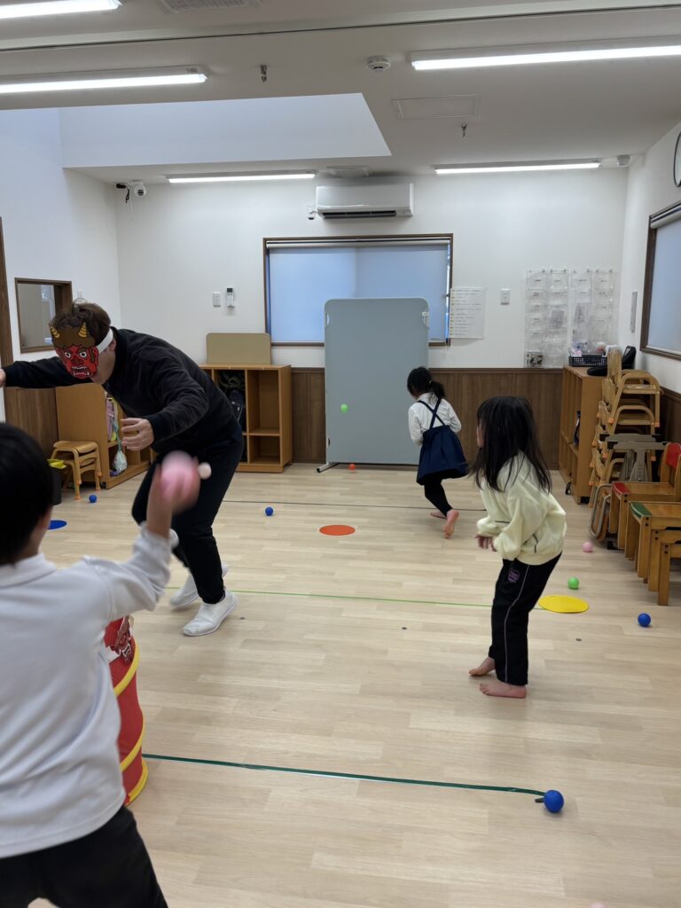 鬼も痛がるほどの豆ならぬボールをぶつけ、無事に鬼退治をすることができました✌️