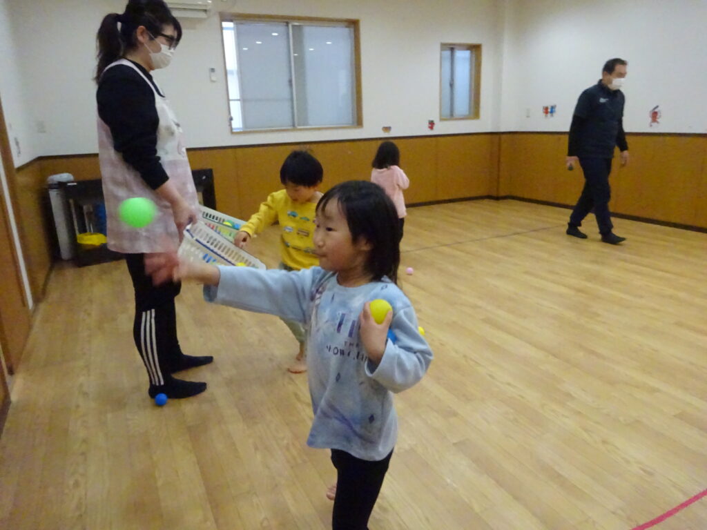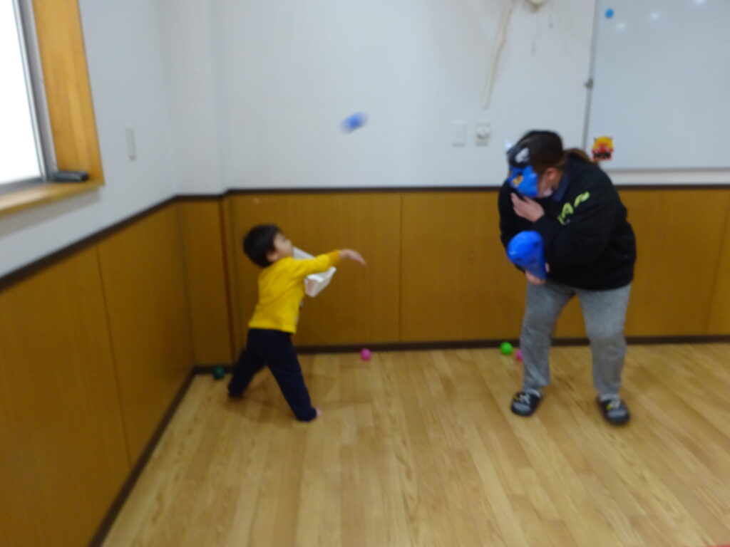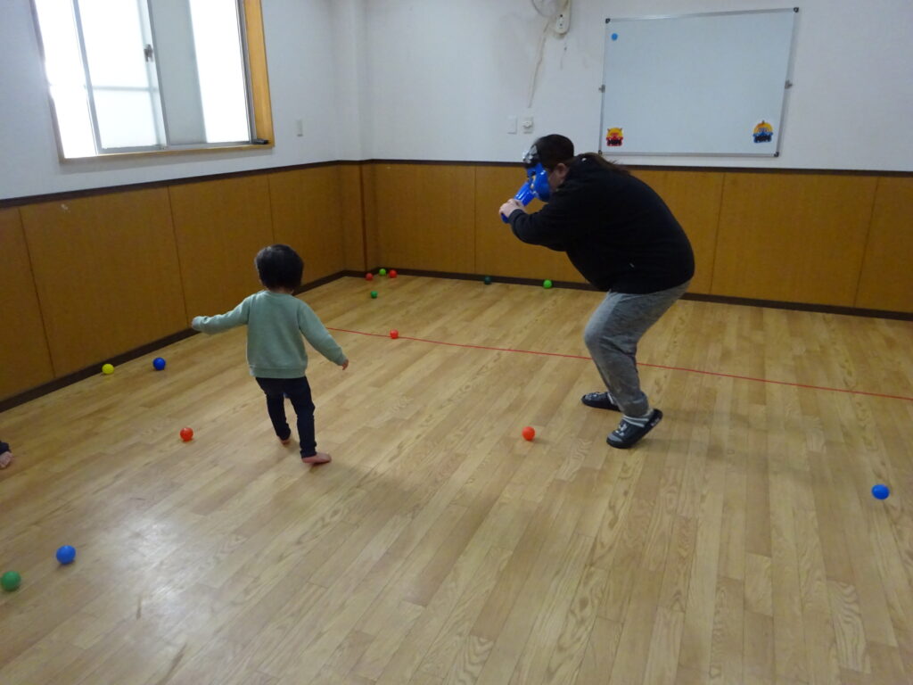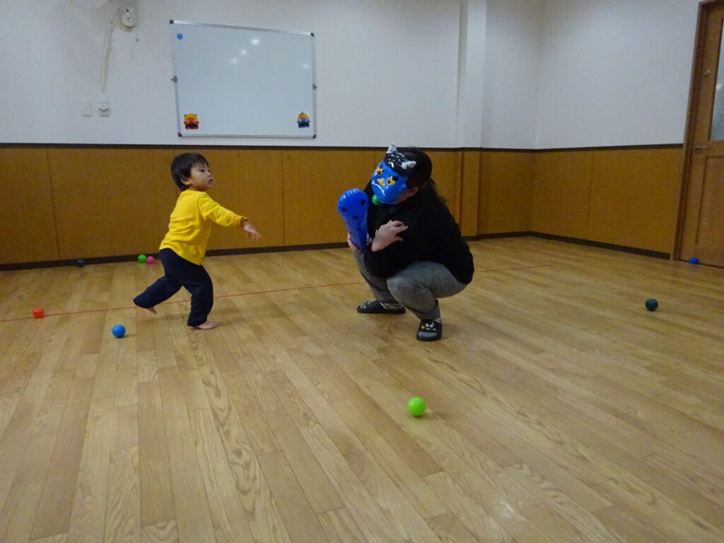 わくわくには青鬼が登場!!ボールを投げてやっつけたところで次は赤鬼が……