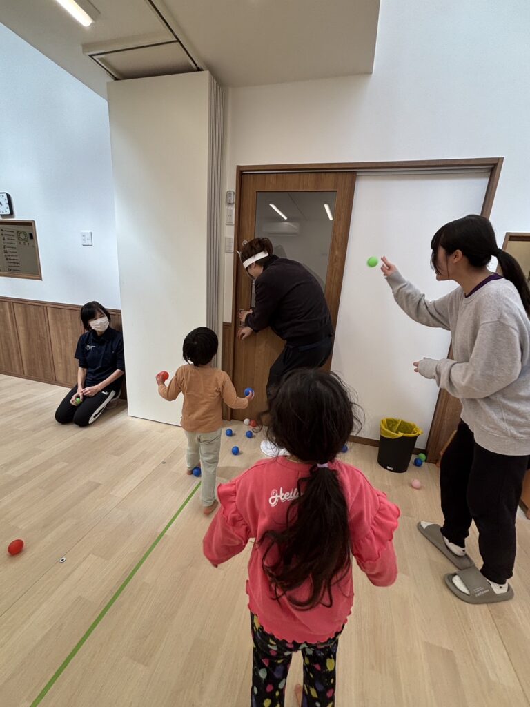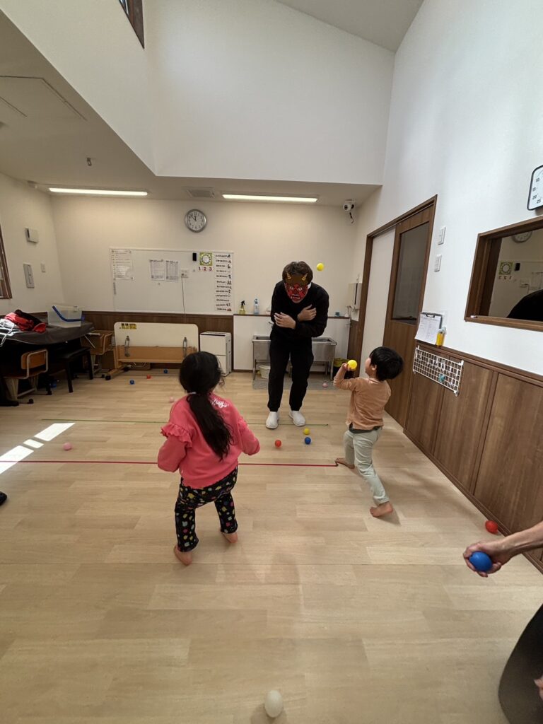 『鬼をやっつけるぞ~!!』とカラーボールを投げて豆まきが始まりました。