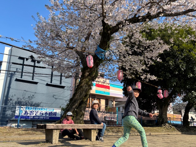 桜が散る前に、「むらさき公園」へお花見に行きました。