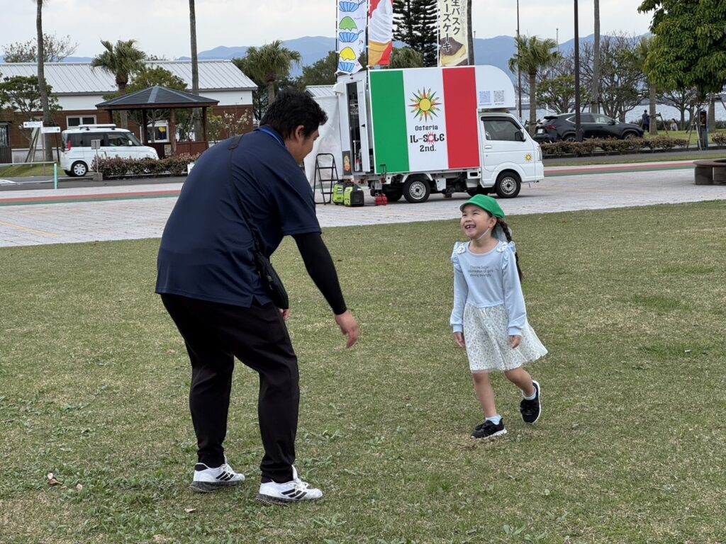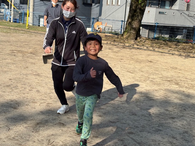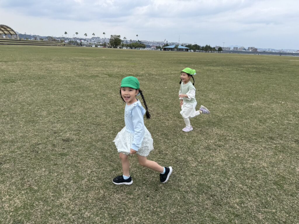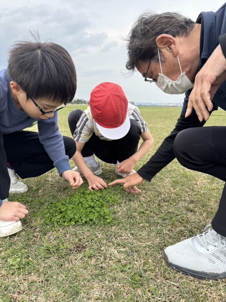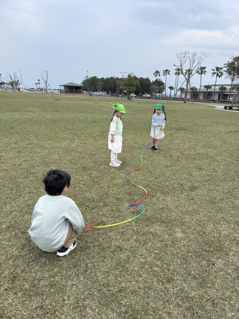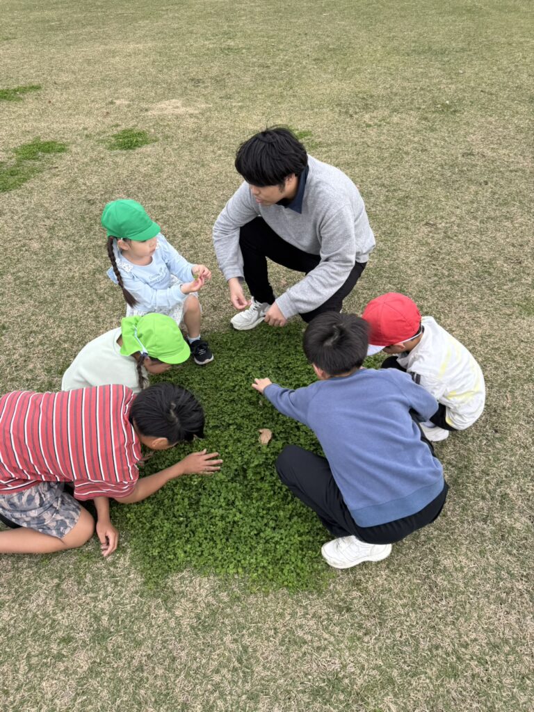 お見送りの後は、みんなでボールや縄跳び、鬼ごっこや四つ葉のクローバー探しと
