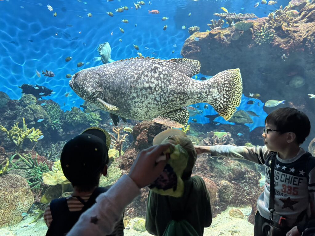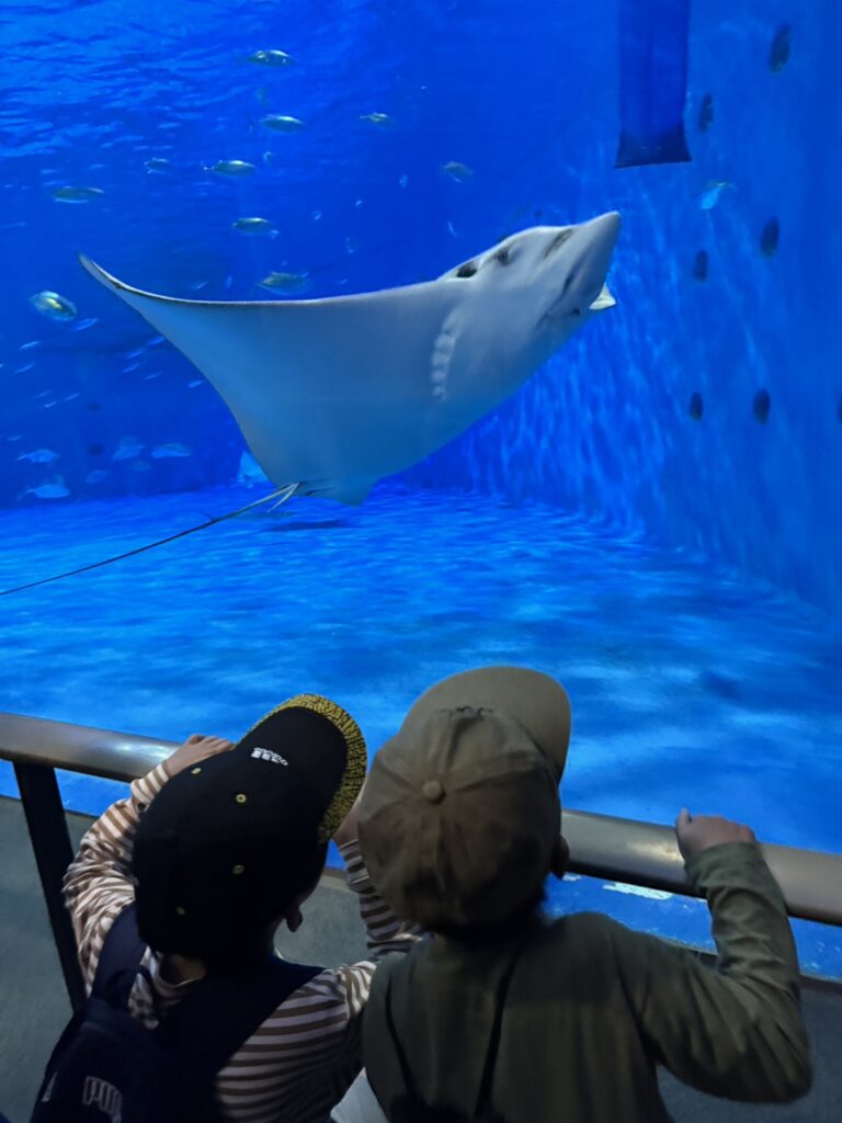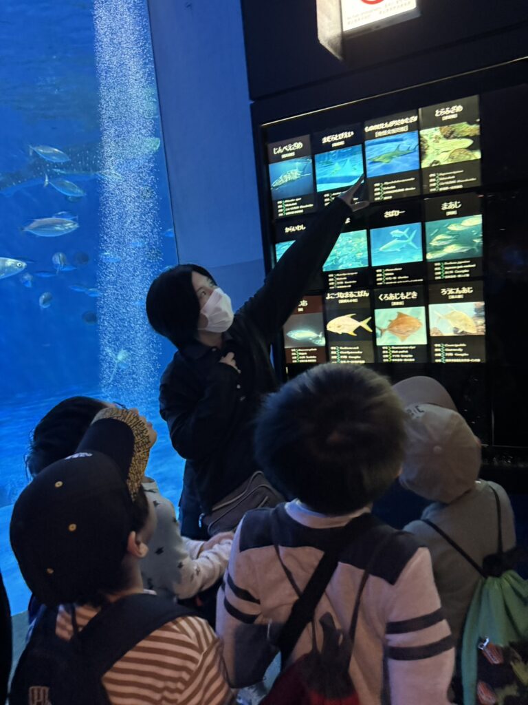 ジンベエザメの大きさにびっくりの子どもたちです🦈