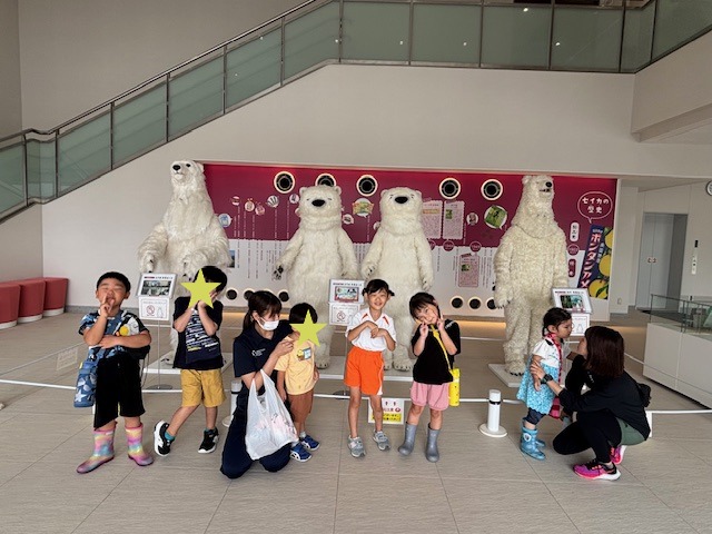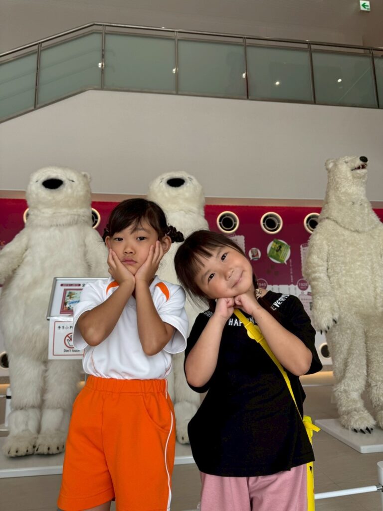 想像以上に大きな白熊さんたちに、びっくりする子どもたち💦