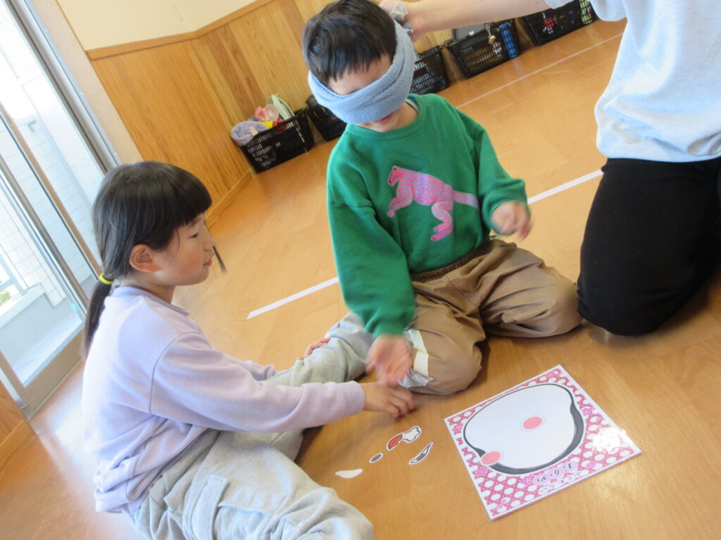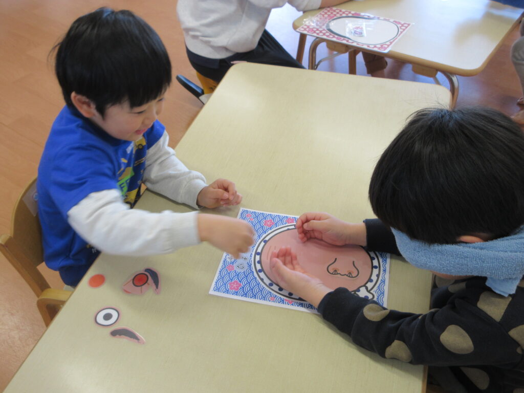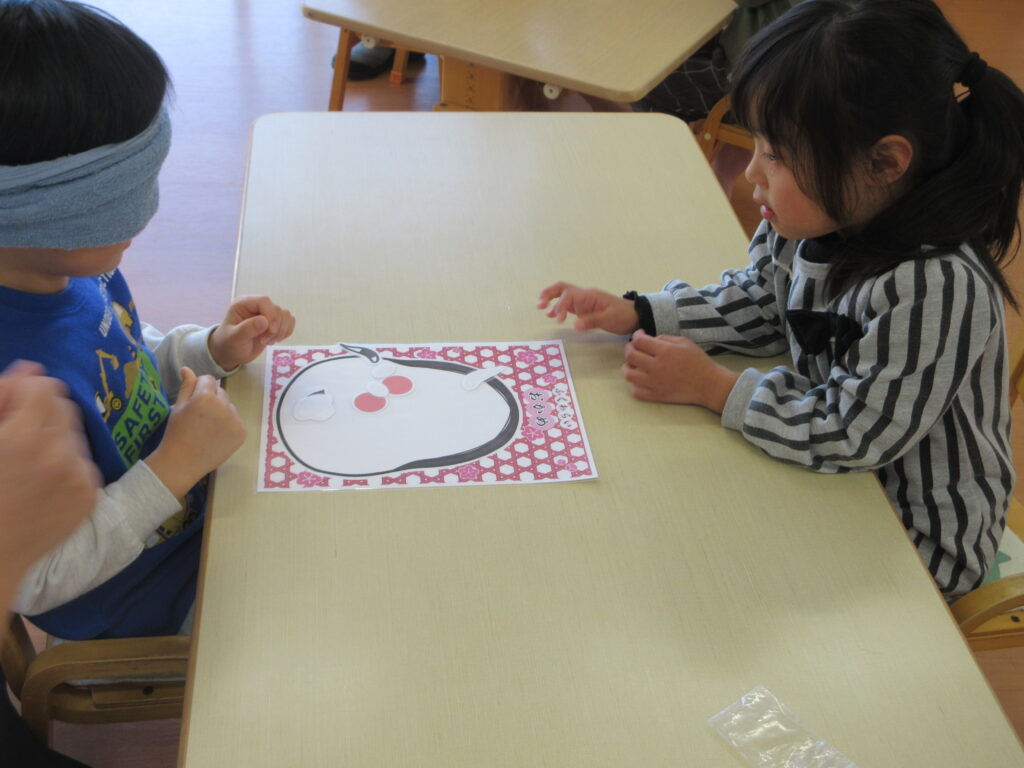 お友だちに渡すときも「鼻だよ~、眉毛だよ~」とタイミングを見ながら渡すため、自分のタイミングで渡さないようにするのも意識していました。
