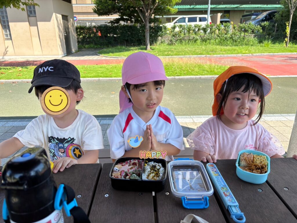 鹿児島市交通局から歩いて隣にある『上荒田の杜公園』へ行き、たっぷり遊んで、お楽しみのお弁当タイム🍱