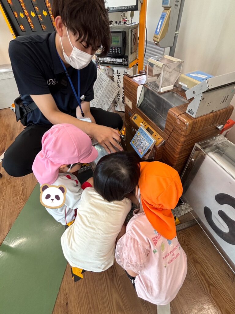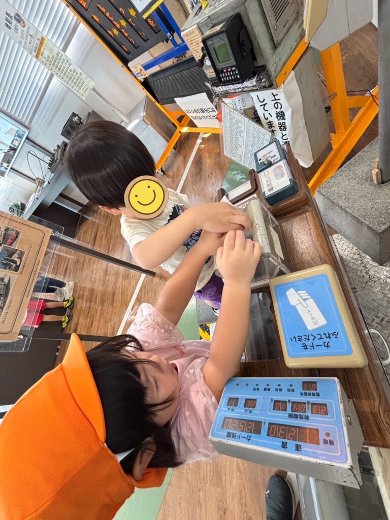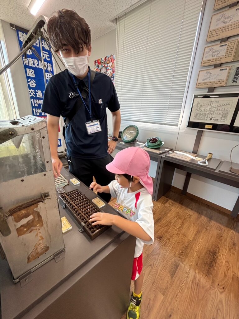 特に、そろばんや古い形の運賃箱は大人気!飽きずに興味を持って体験してくれました😄