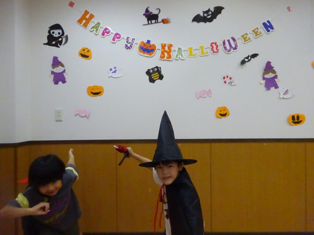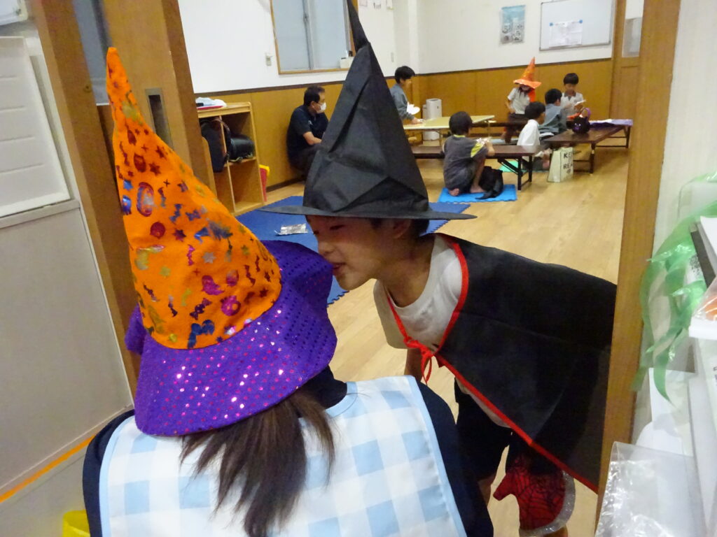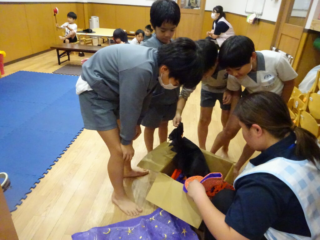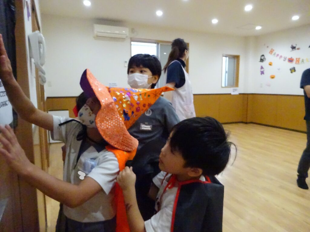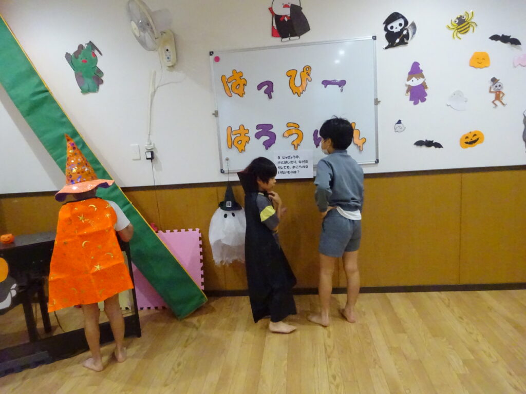 当日は学校後だった子どもたちもいましたが、仮装を持ってきていたり事業所の衣装の中から選んだり……
