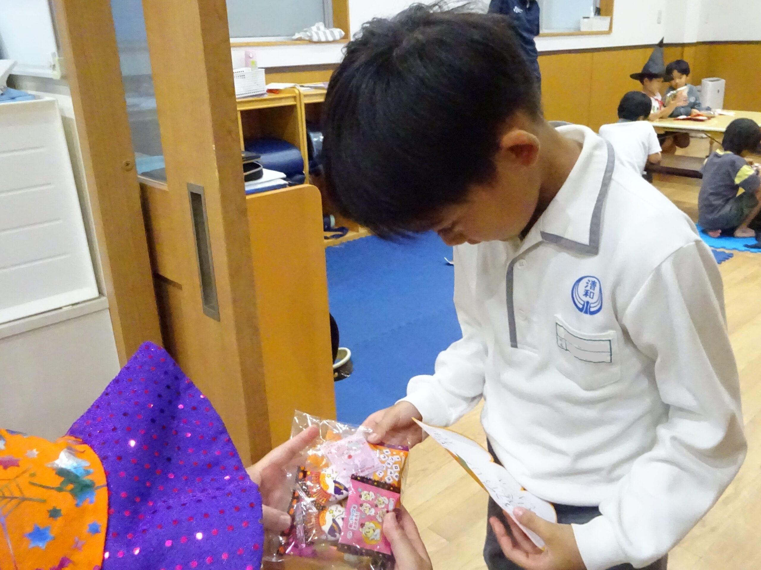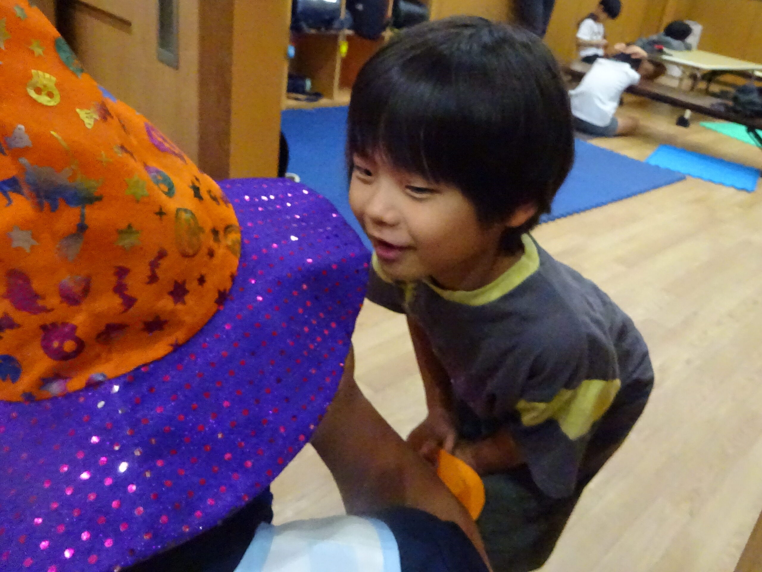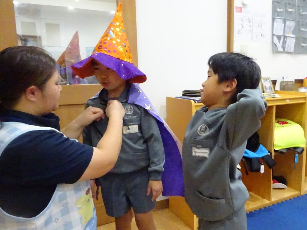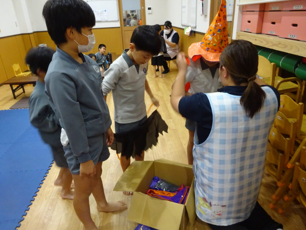 「仮装しな~い」と言っていた子もお友だちの衣装は気になるようで覗きに来ていました🎃