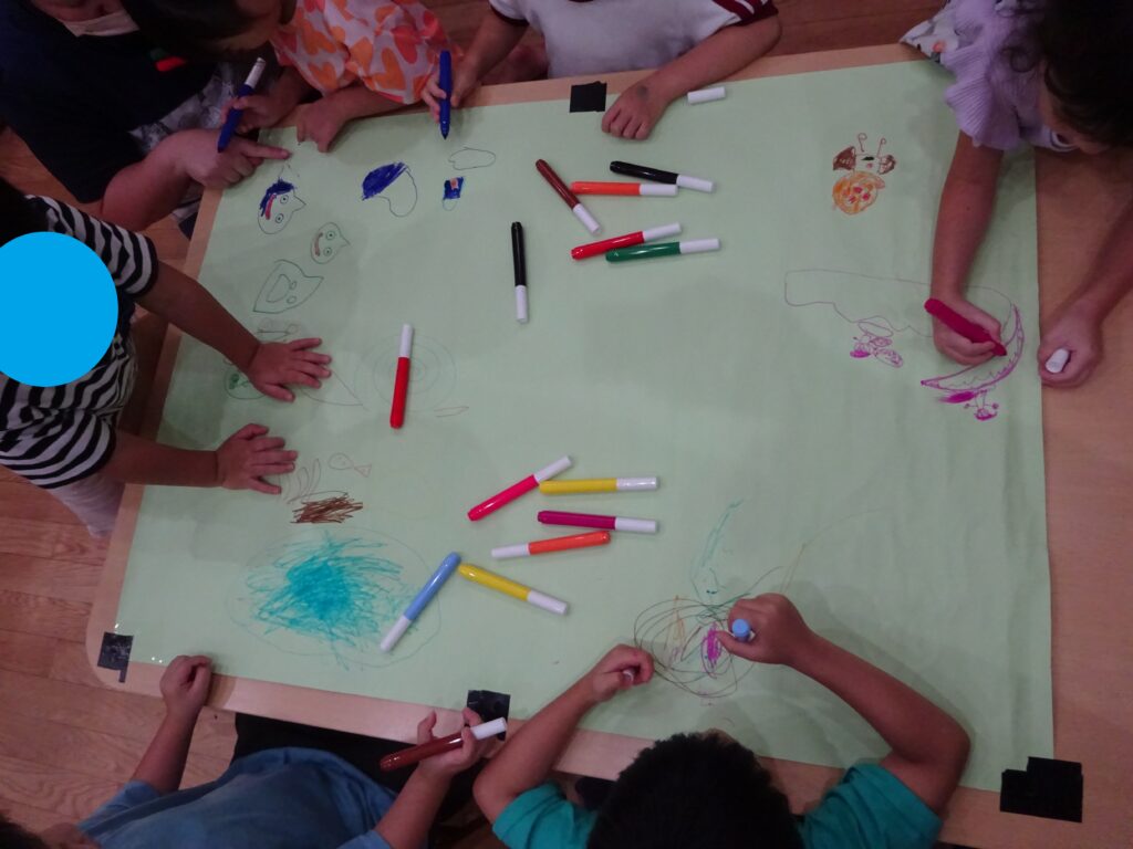 子どもたちの好きなキャラクターや職員の写真の上から半紙を貼って、水で濡らすと……?