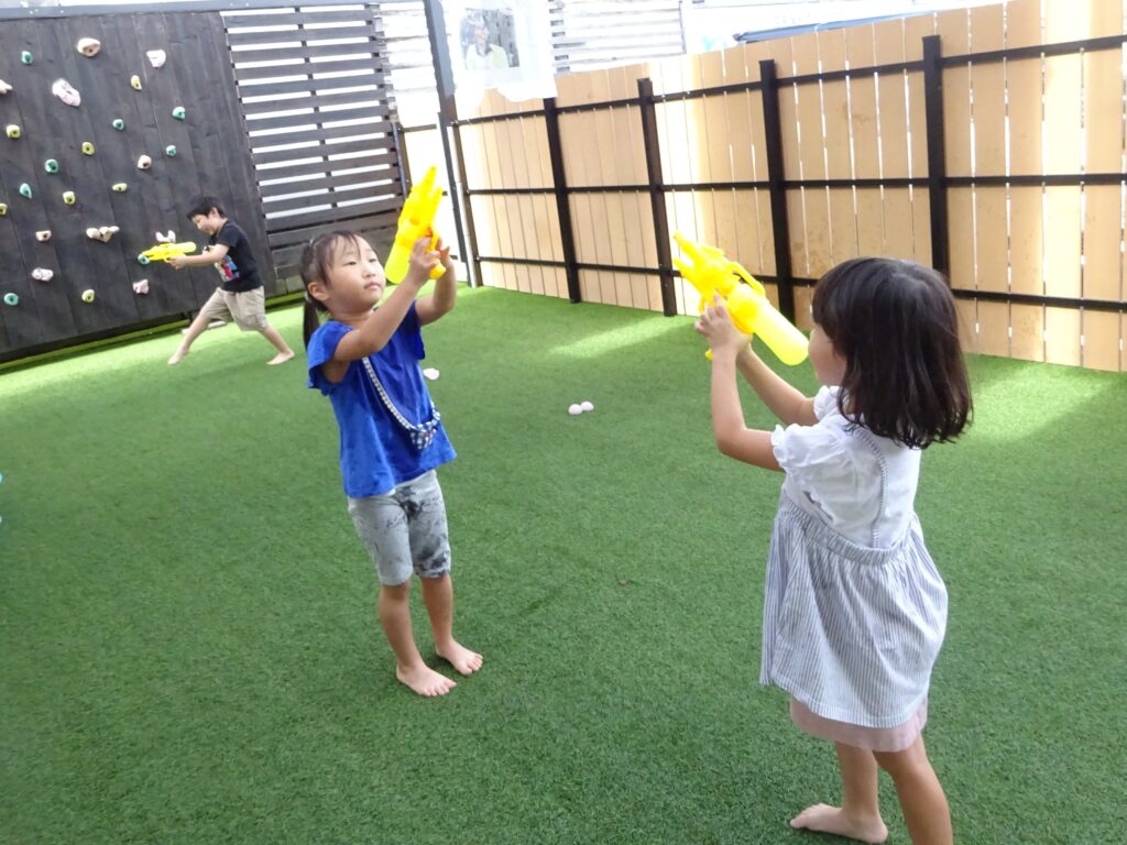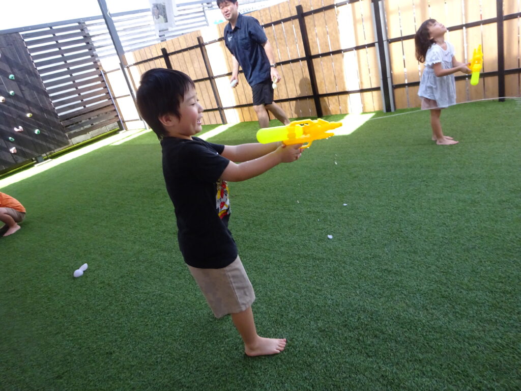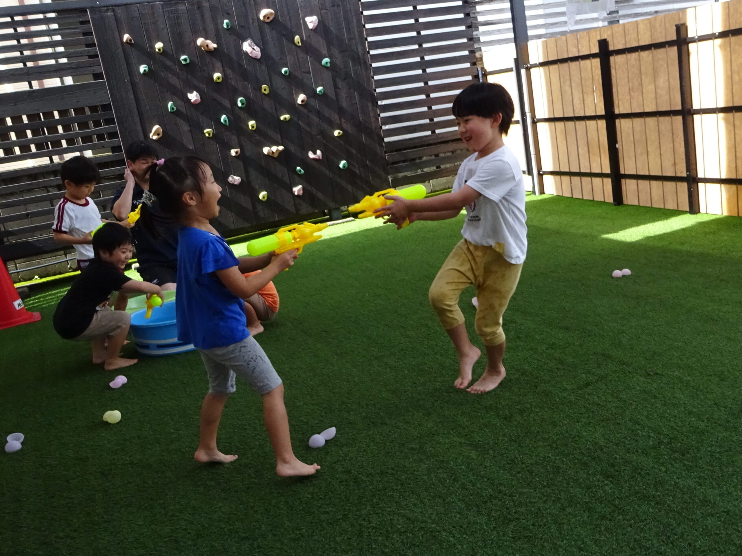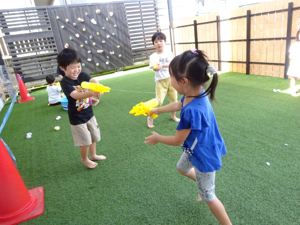 水鉄砲のかけ合いもあちらこちらで起きていて、かける子もかけられた子も爆笑していました☺