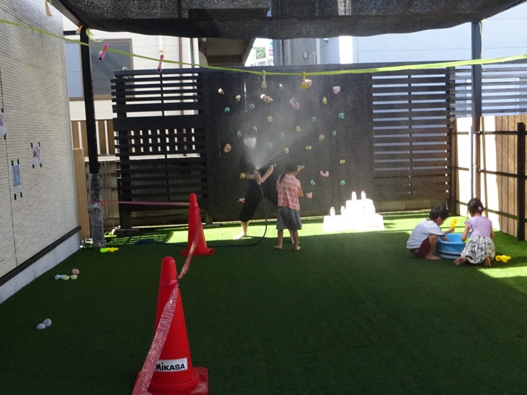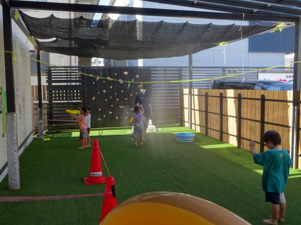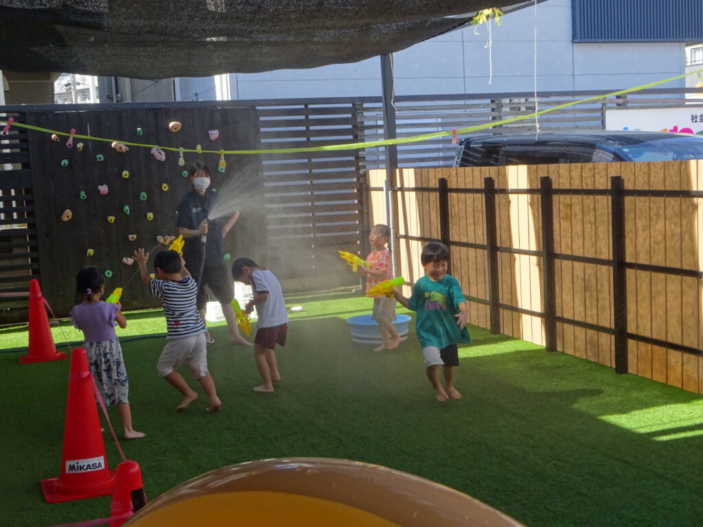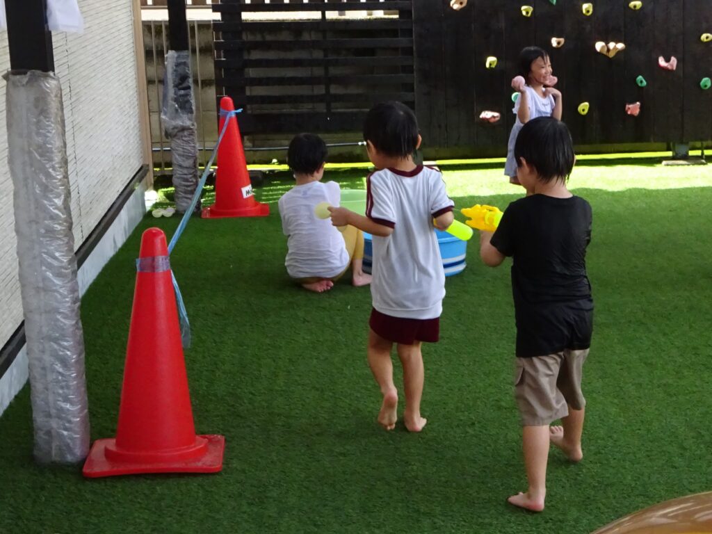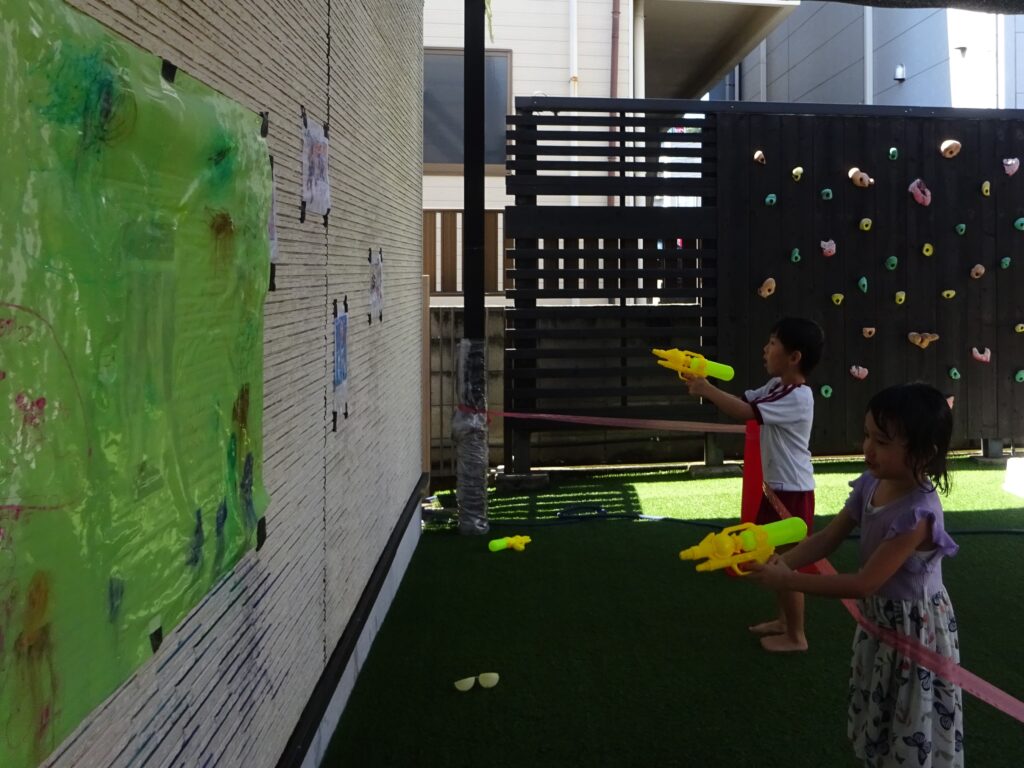 水鉄砲のかけ合いもあちらこちらで起きていて、かける子もかけられた子も爆笑していました☺