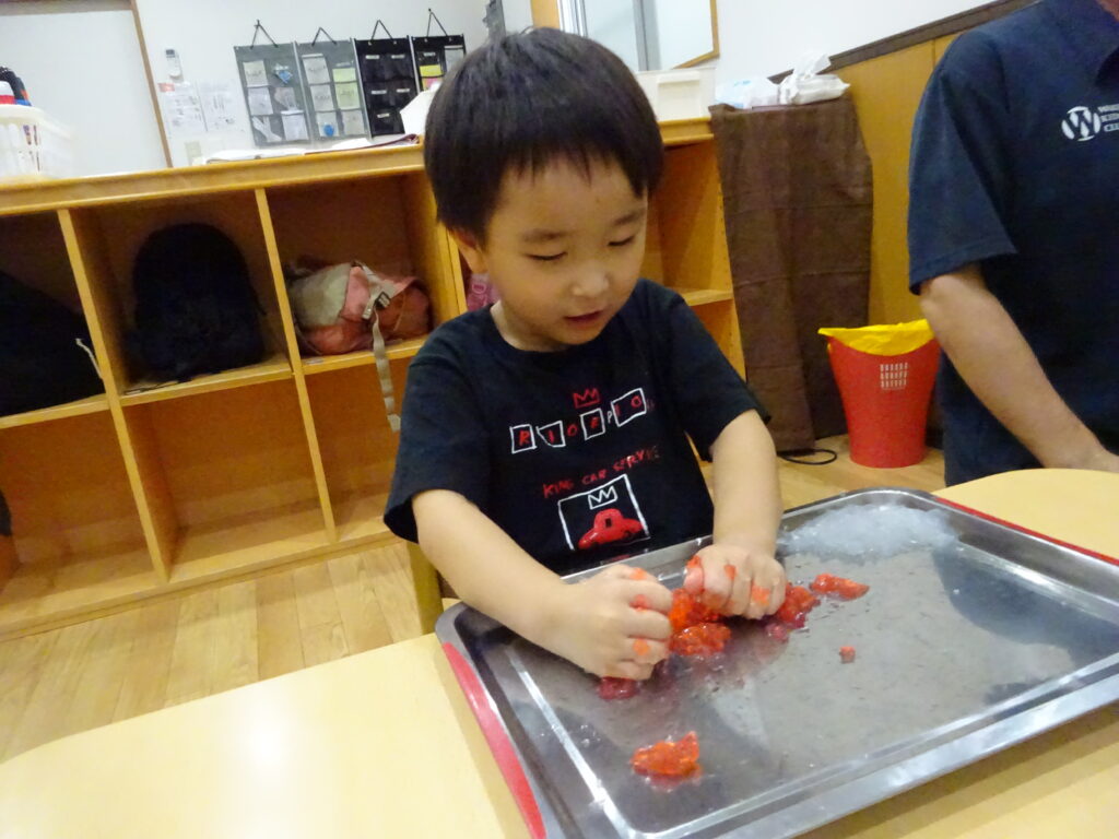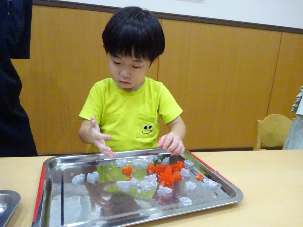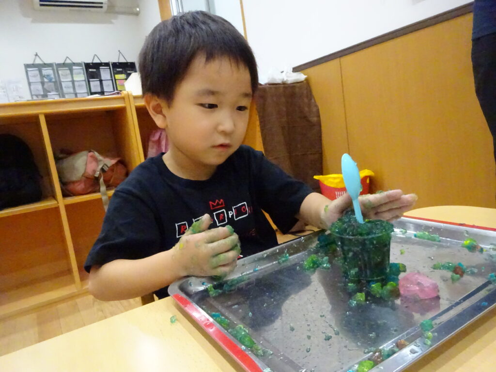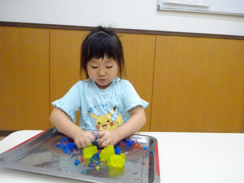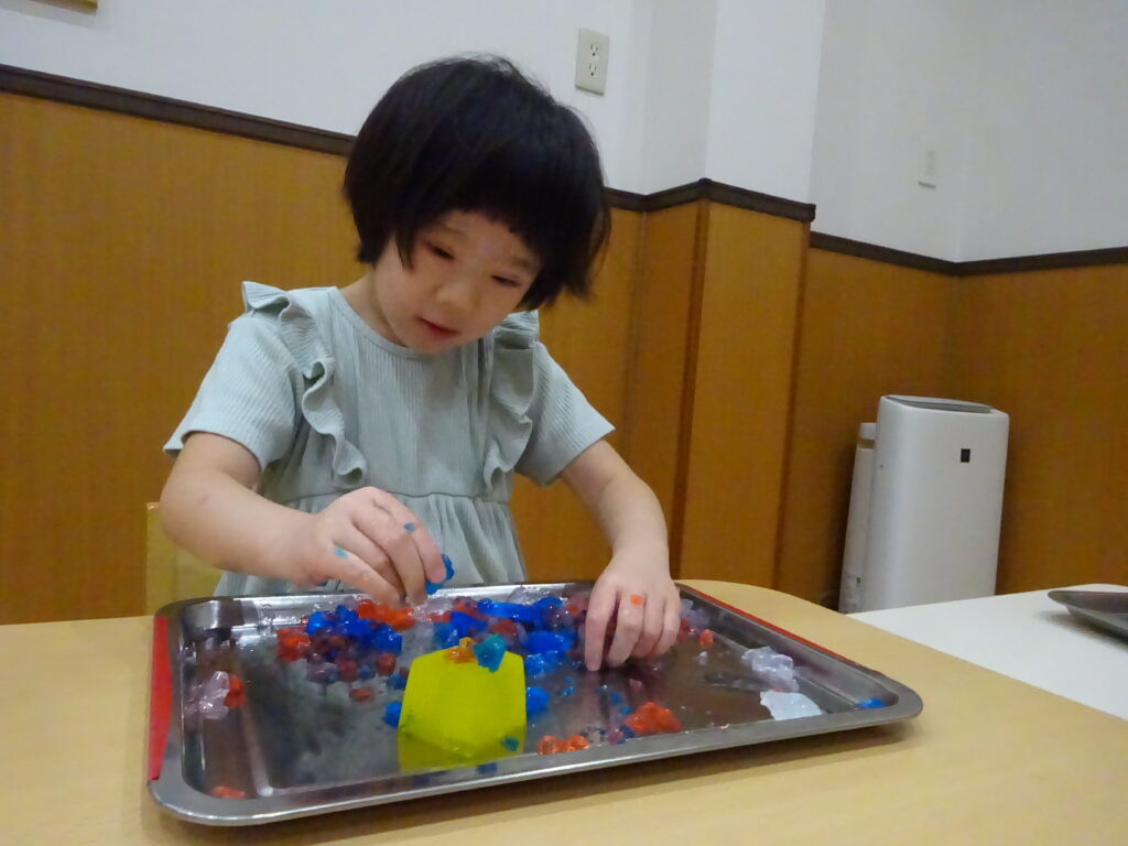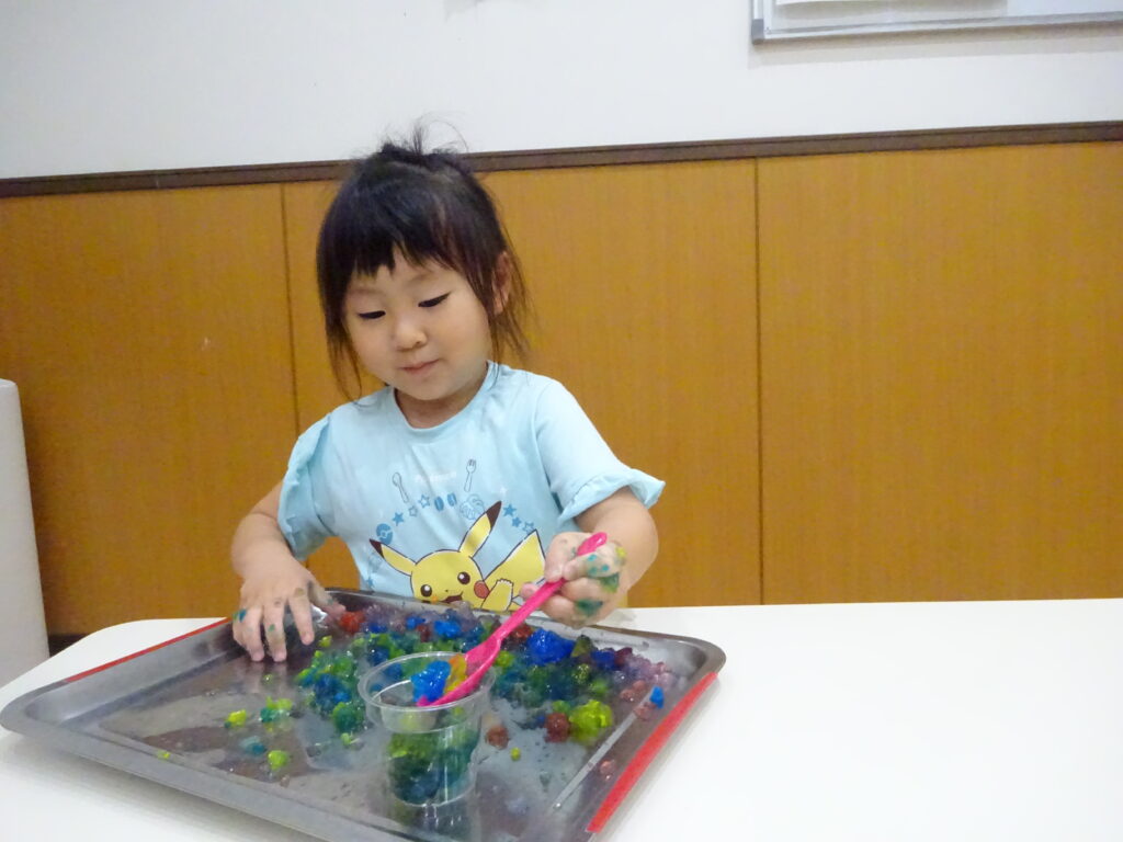 水あそび、寒天あそびなど夏ならではの遊びは今月で終了しました。