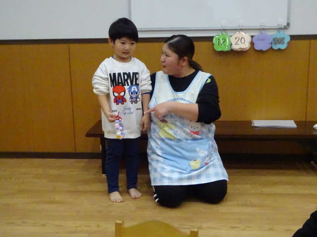 「あ!せんせい!」とすぐに気づいた子もいましたが、嬉しそうに受け取っていました🎁