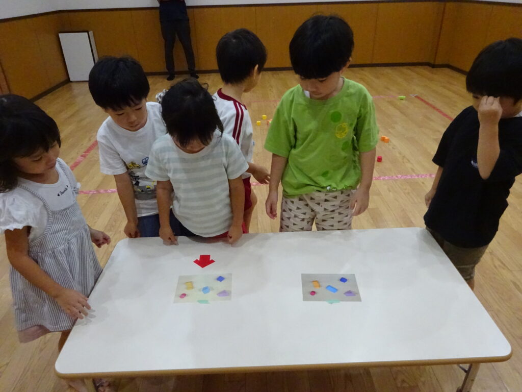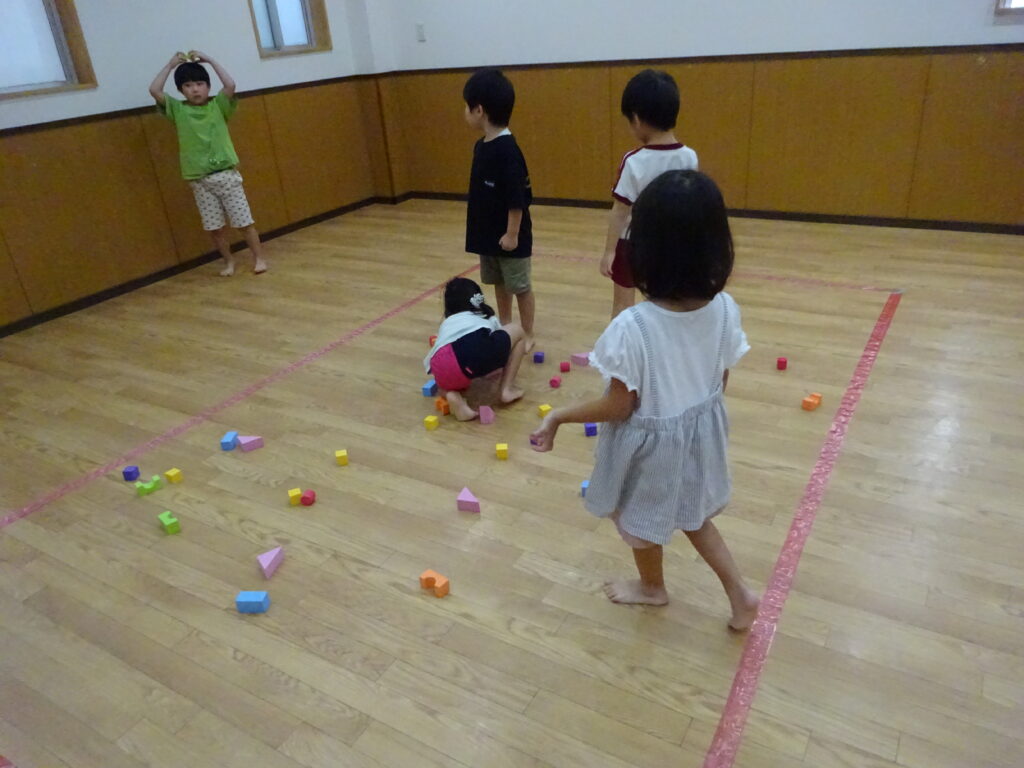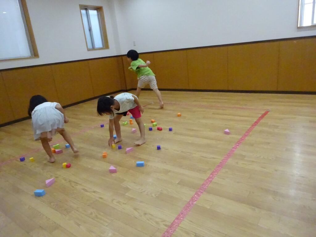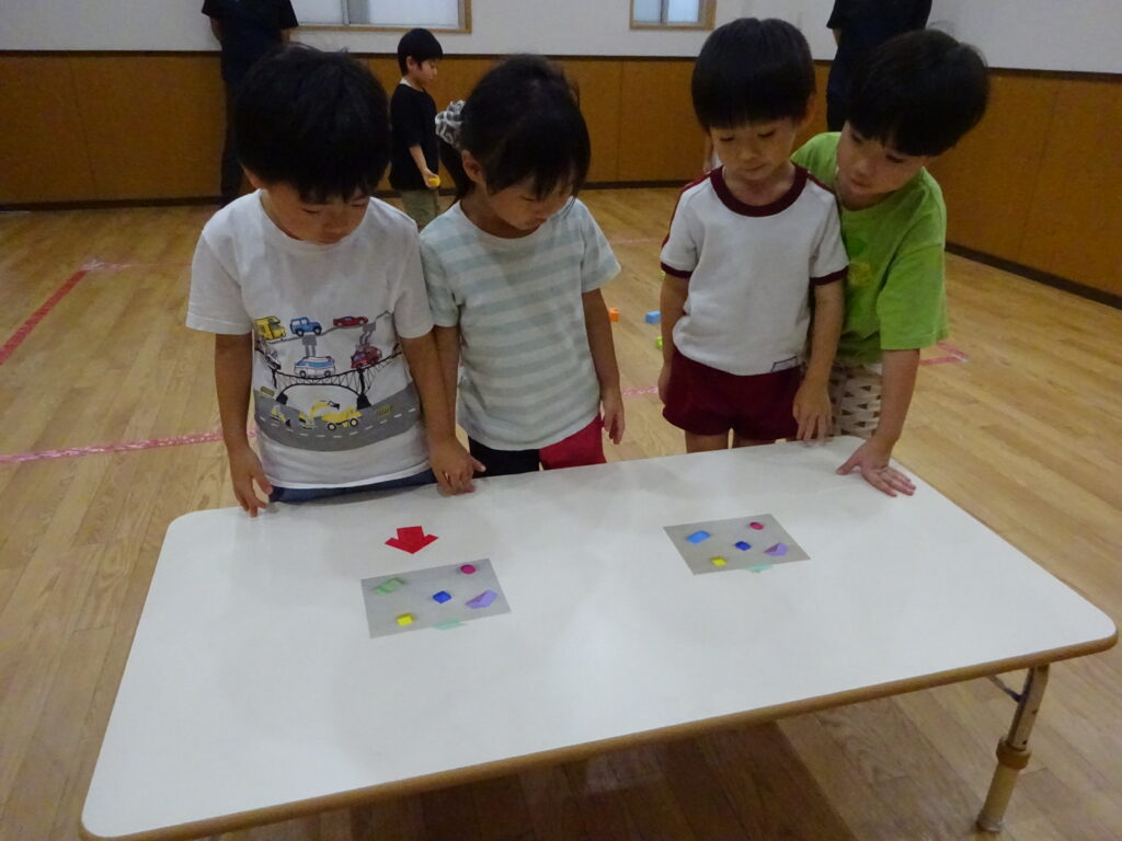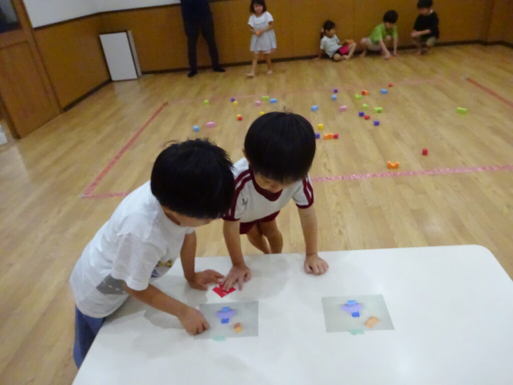 いきなり45分間座って取り組むことは難しいので、9月は知恵遊びに向けて座って取り組む活動と動きながら取り組む活動と半分ずつ行いました。