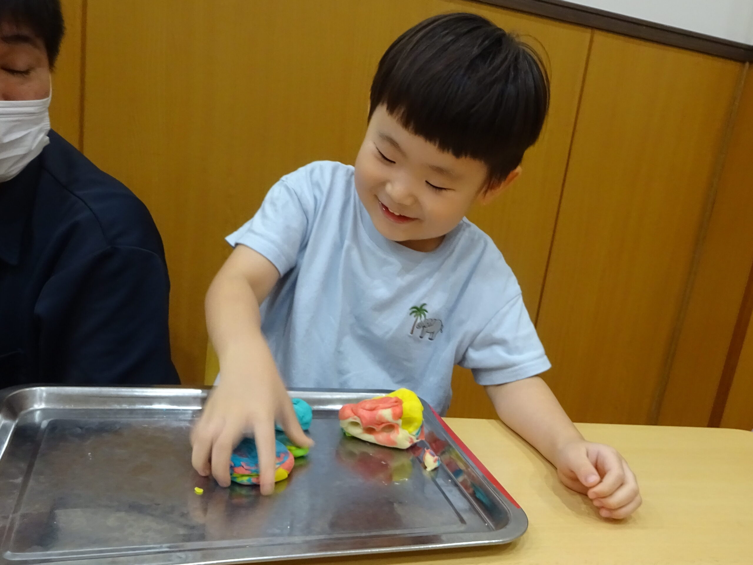 時間いっぱい混ぜて伸ばして遊ぶ子どもたちでした!