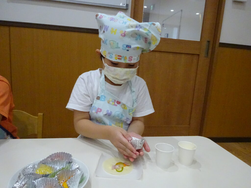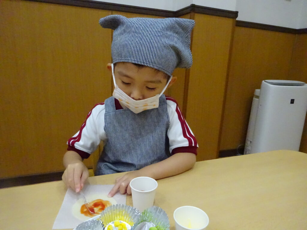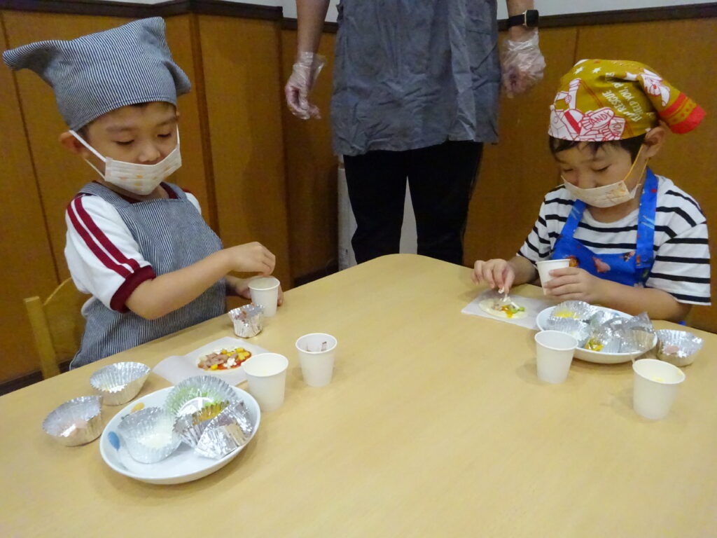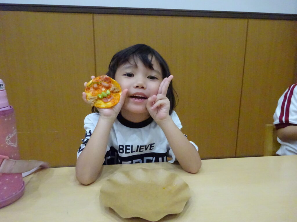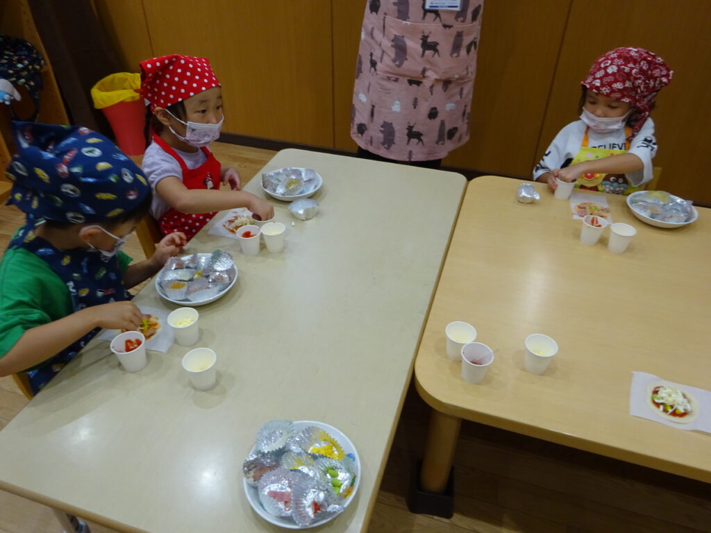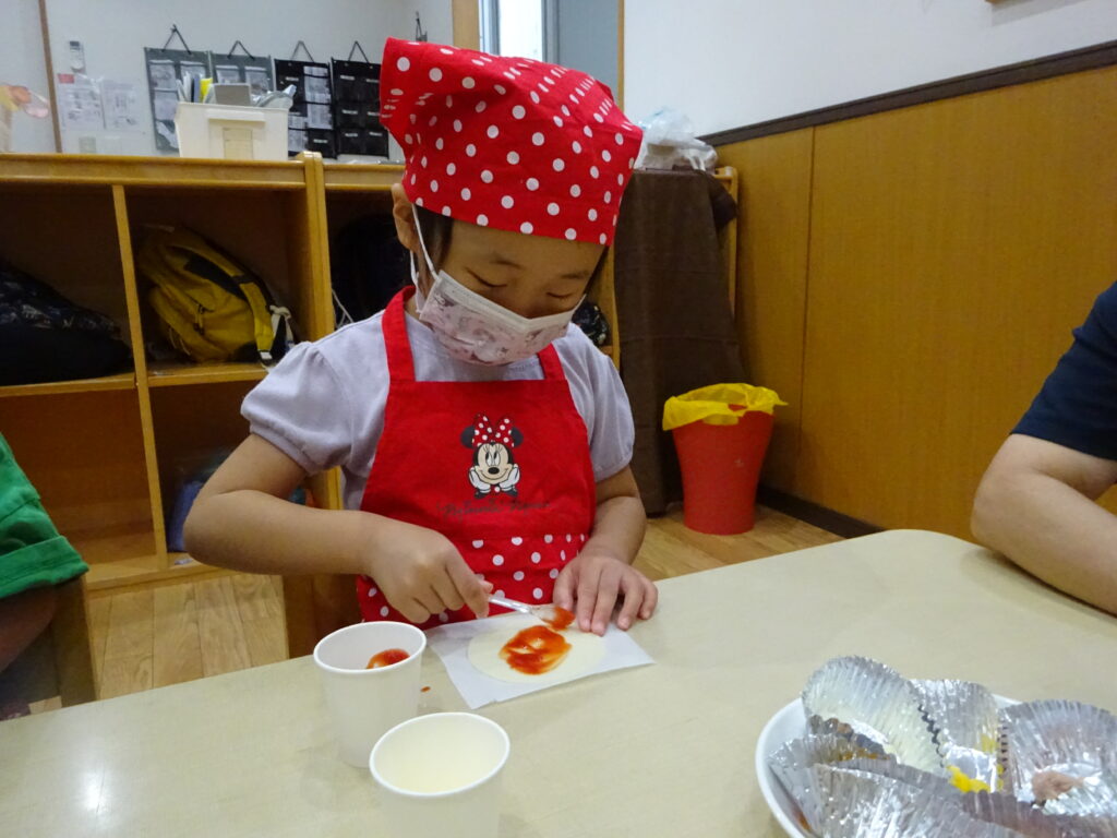 9月のクッキングは餃子の皮でミニピザを作りました。