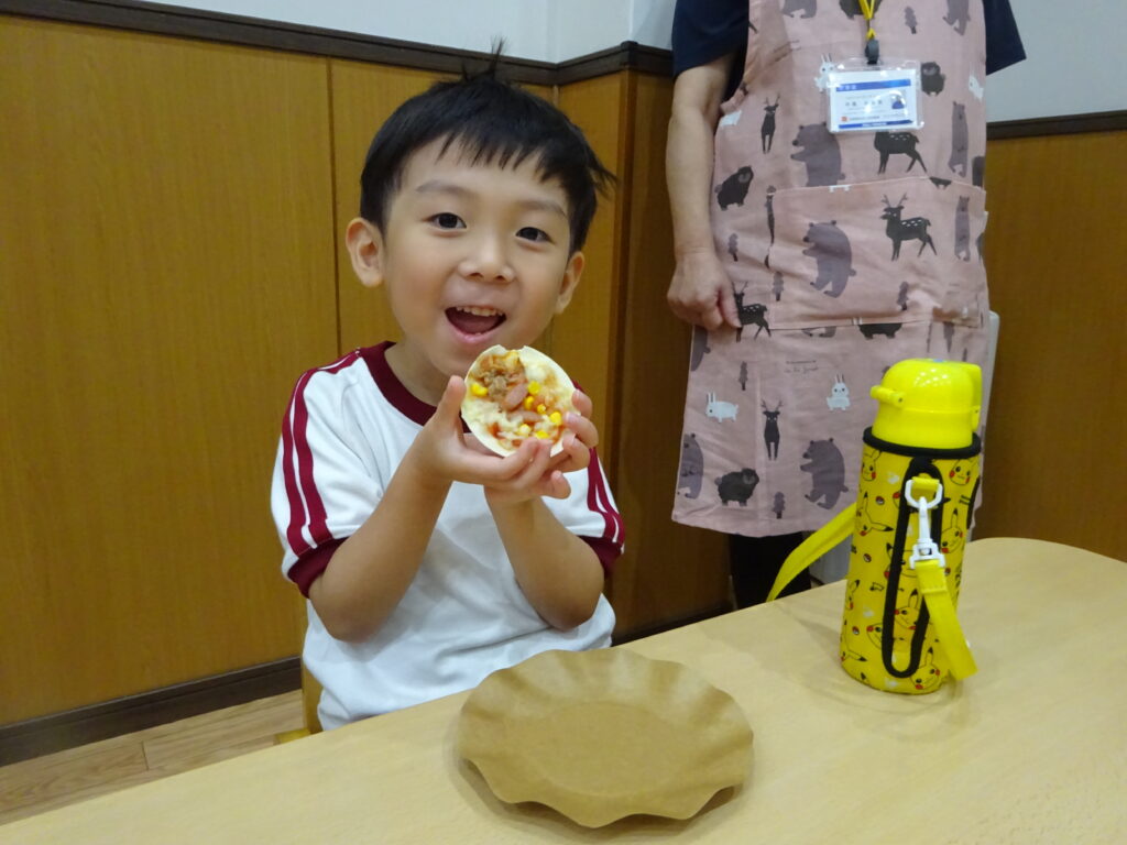 ホットプレートで焼く頃には「早く食べたいな~」「おなかがぐーってしてるよ。」と子どもたち☺