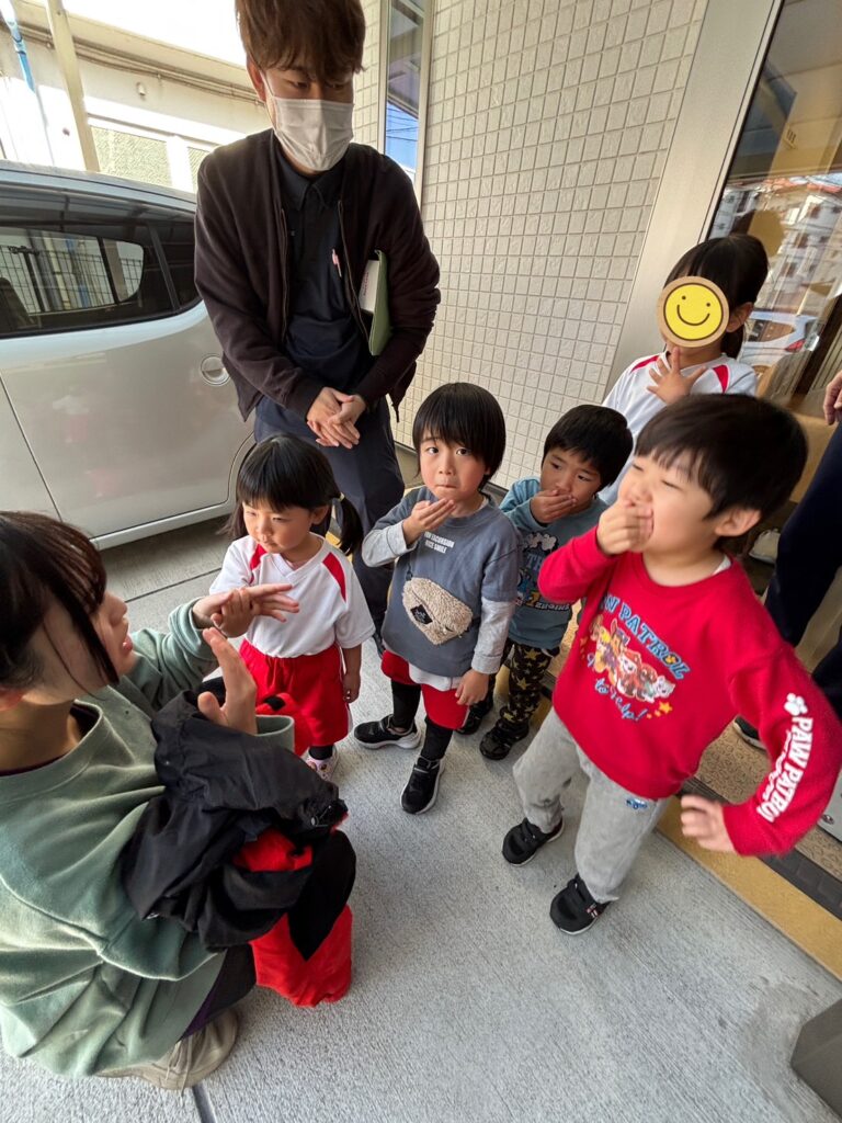 『火事です!火事です!みんな非難をして下さい!』と先生が走ってくると、みんなすぐに指示に従って避難することができました✌️